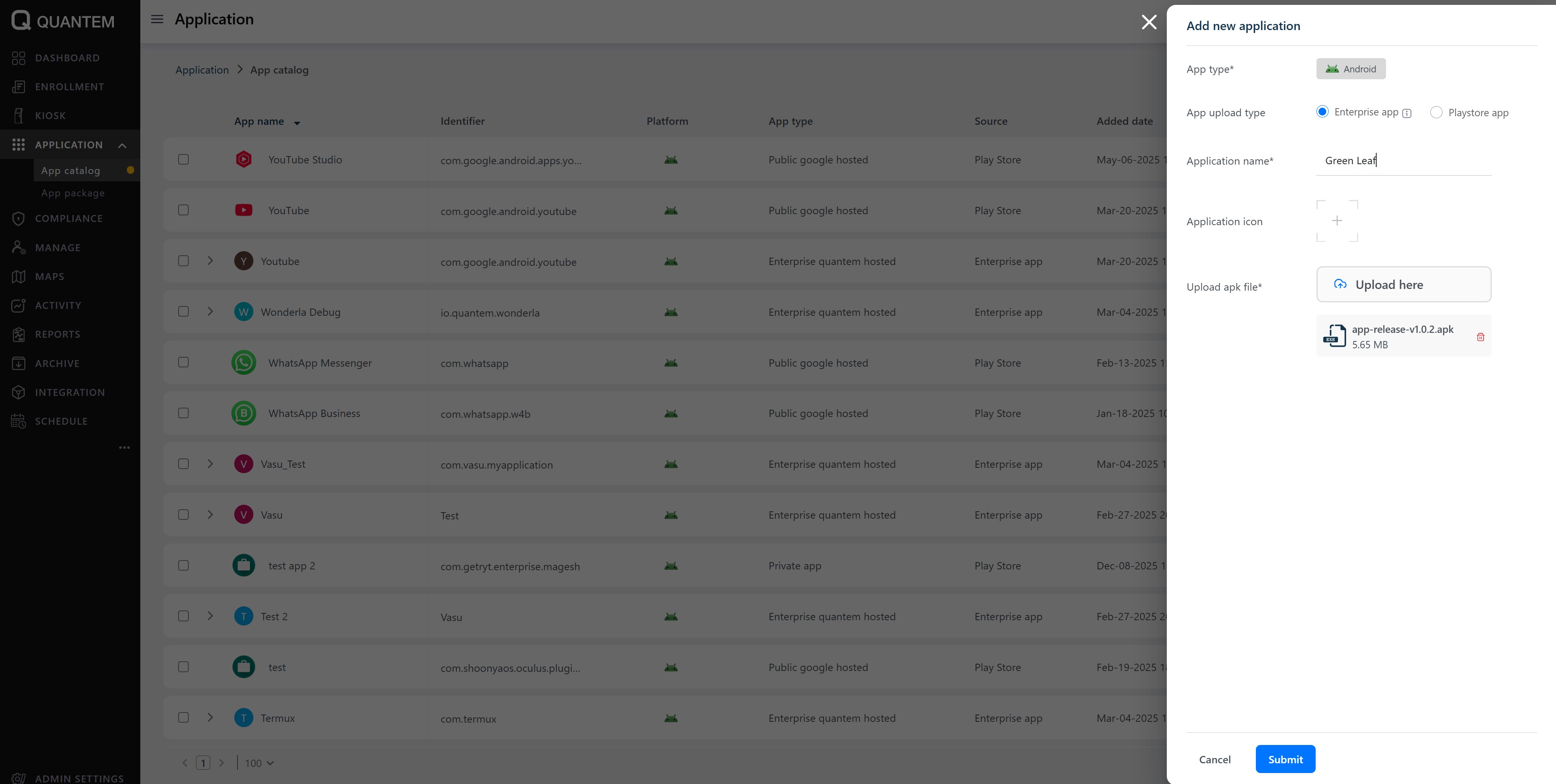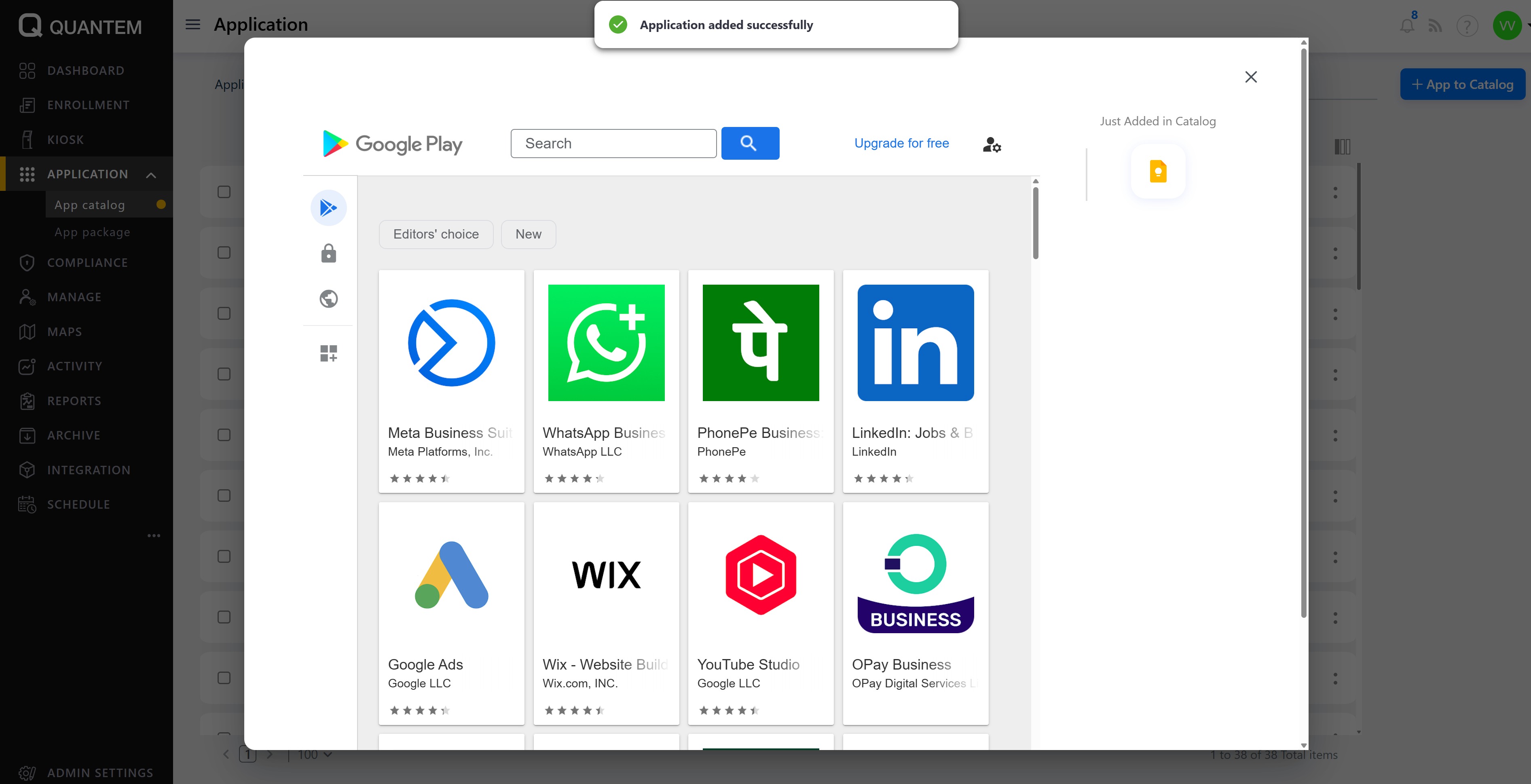 A dialog with Enterprise app and Playstore app options is shown. Select Enterprise app.
