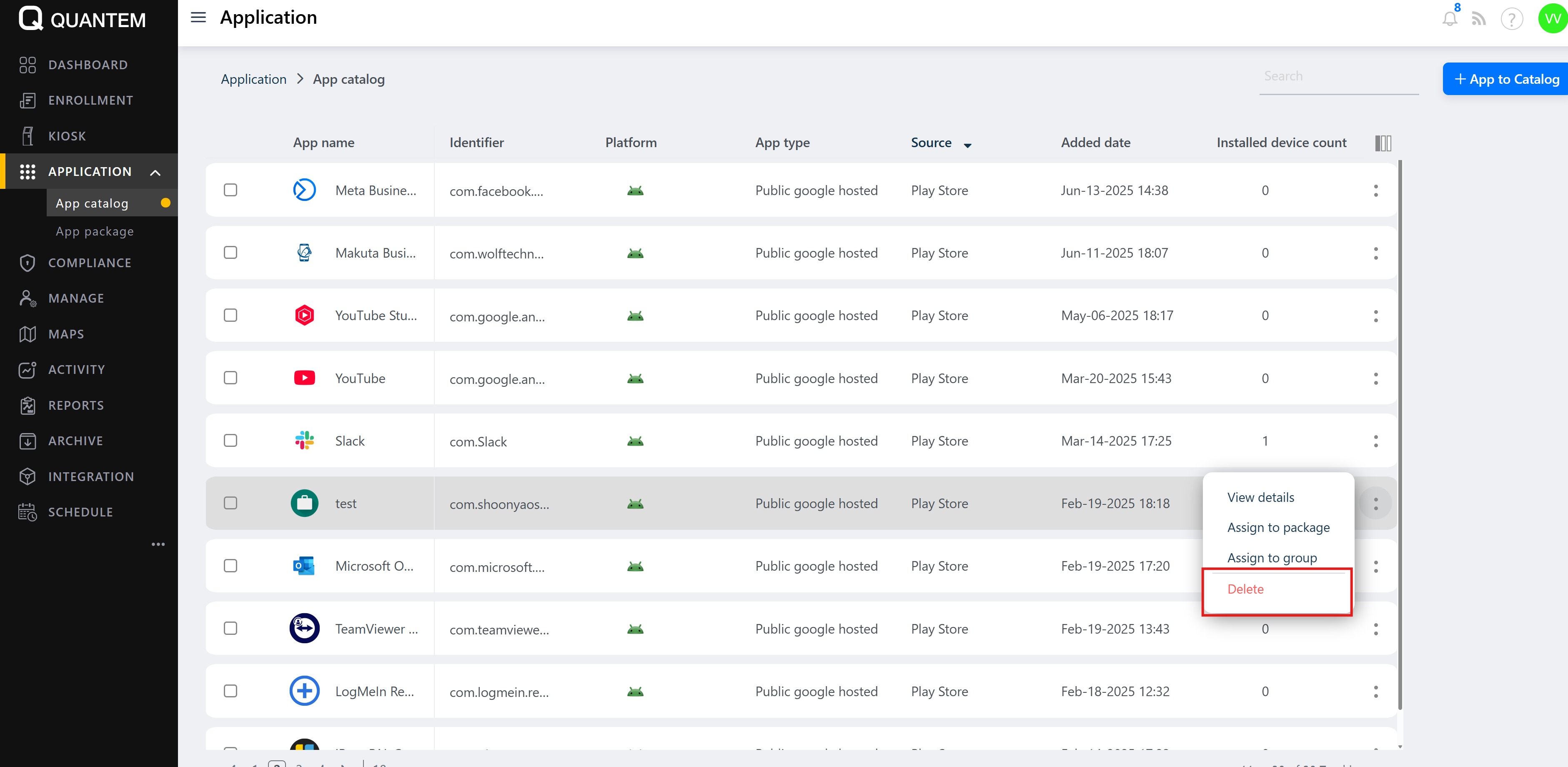 Context Menu – Right-click options to view, edit, delete, or assign apps