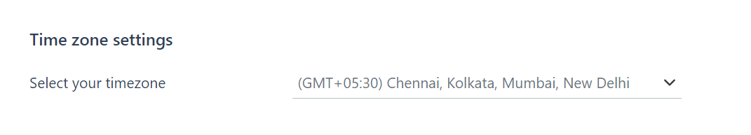 Select your desired time zone from the dropdown (e.g., GMT+05:30 Chennai, Kolkata, Mumbai, New Delhi).
