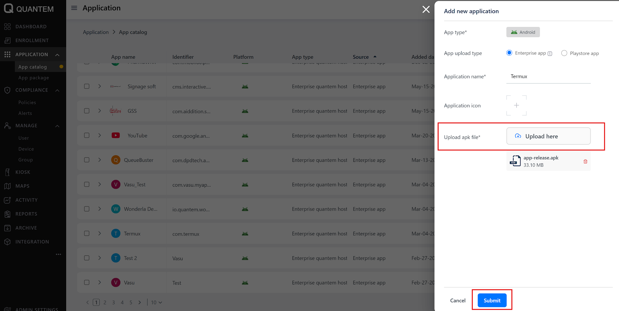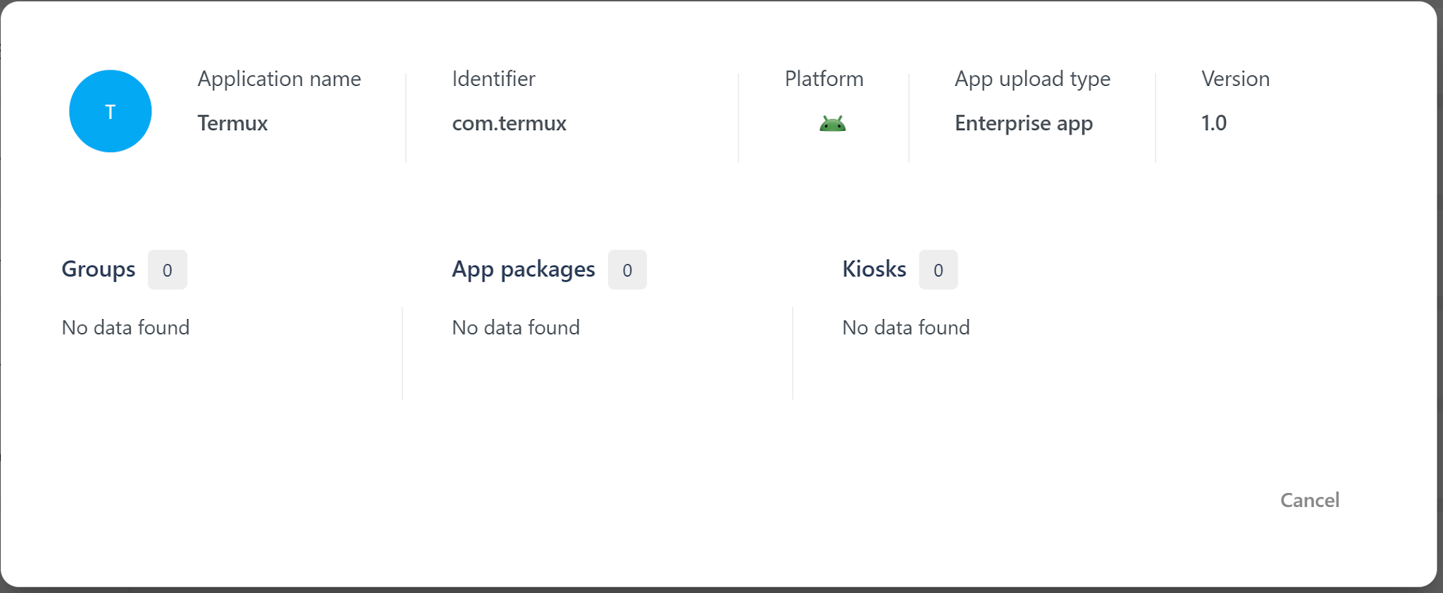 This guide explains how to add enterprise apps (APKs) to your catalog for non-GMS/AOSP devices, view their details, and assign them to kiosks or groups. Enterprise apps are identifiable by their.