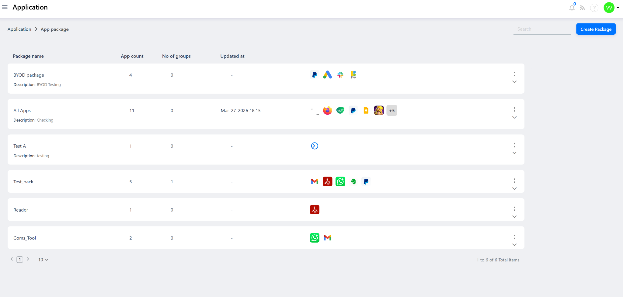 Once all required apps are selected, click Save. The package will be created and listed under App Packages.