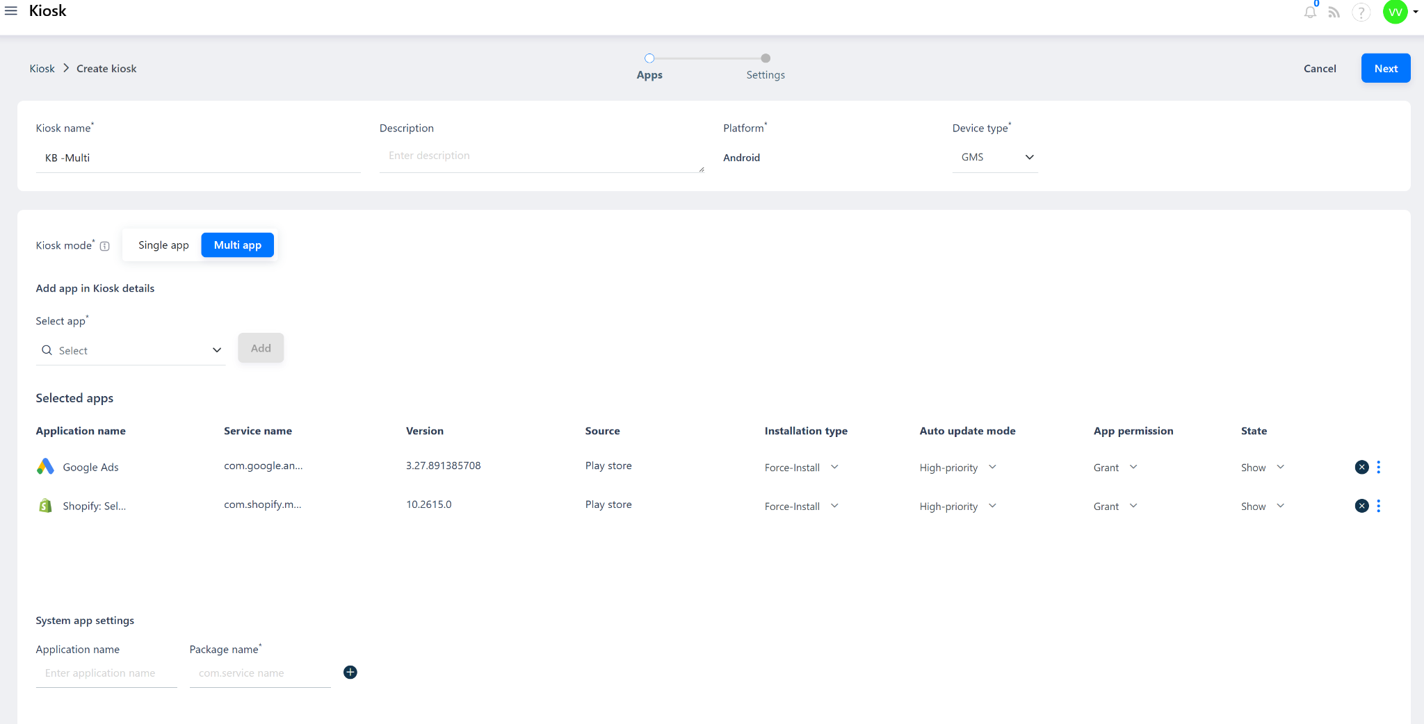 Multi App Mode — Allows multiple apps to be accessible on the kiosk launcher
