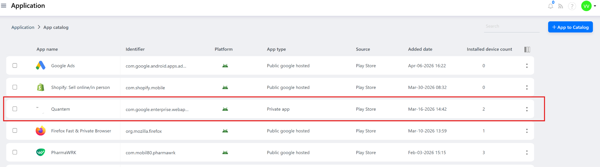 Automatically whitelisted and added to the App Catalog in the Quantem Console