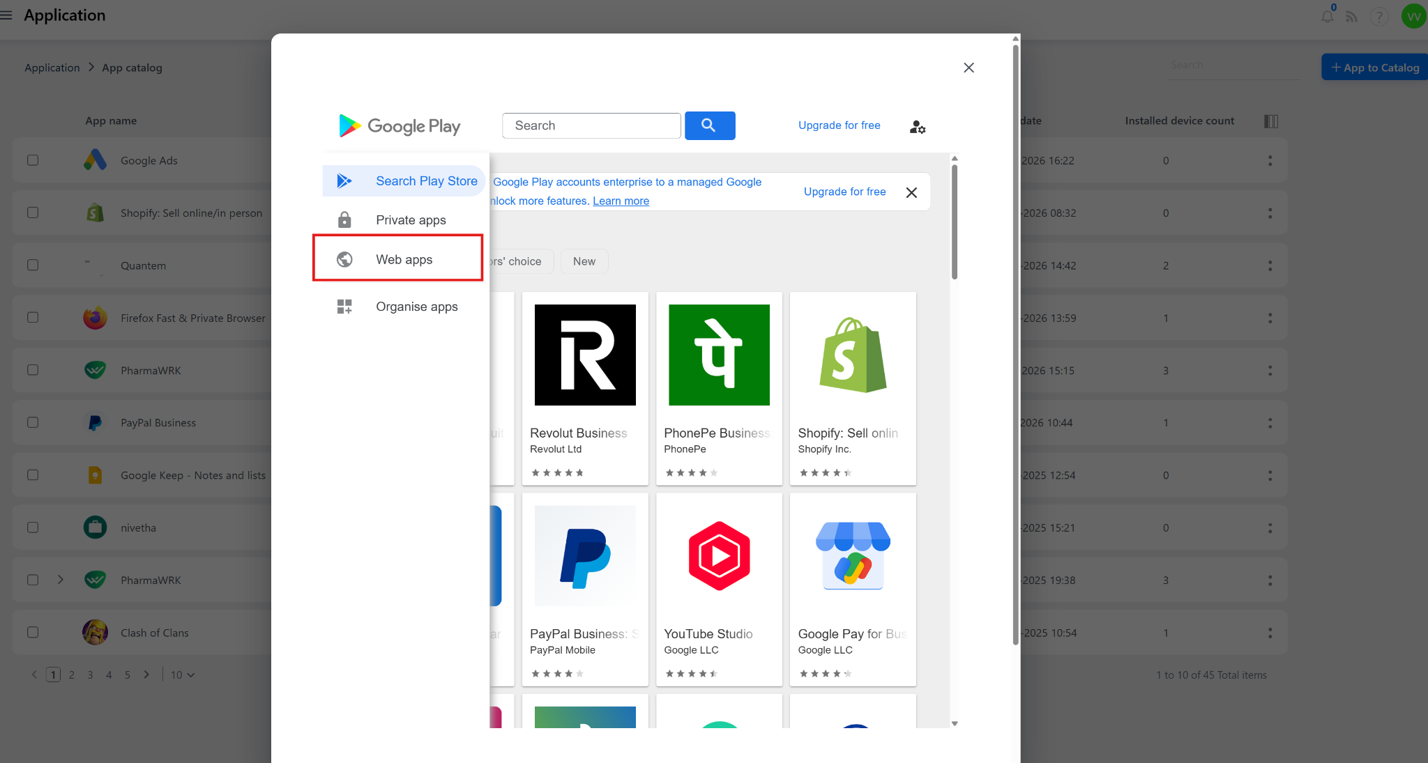 Step 4: Navigate to Web Apps in the iframe
