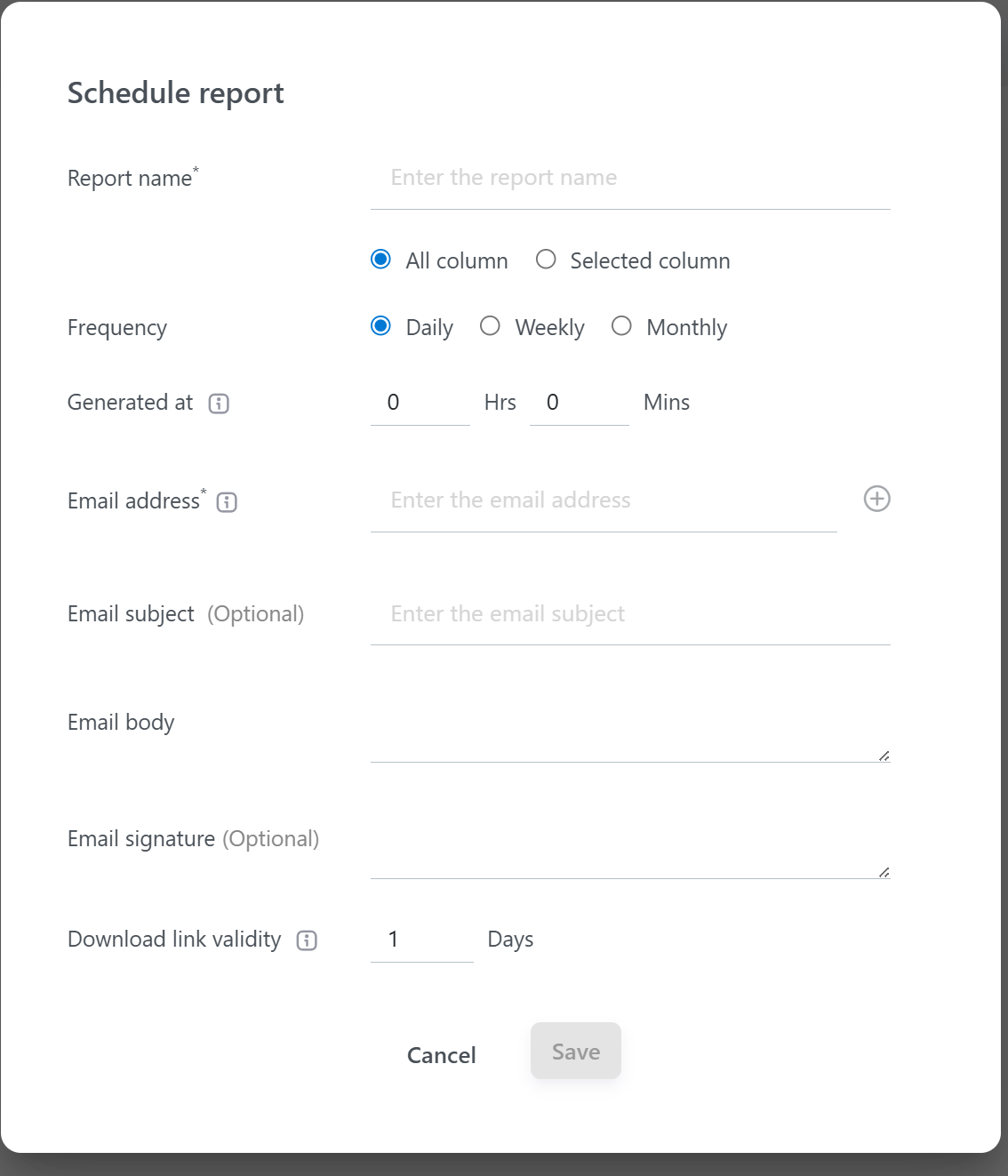 Note: Once the download link validity period expires, the recipient will no longer be able to download the report from the email link. Ensure the validity period is set appropriately based on the report frequency and recipient availability.